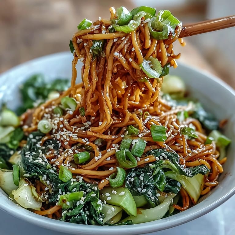 What makes this dish feel complete rather than like a side is the combination of textures and temperatures—the warm, slippery noodles coated in fragrant sauce, the crisp-tender greens on top, the crunch of sesame seeds, and the optional heat from fresh chili. It's this interplay that keeps your palate engaged, so you're never bored by the time you reach the bottom of the bowl. I've noticed that people eat these noodles more slowly and deliberately than they do most other noodle dishes, which tells me something about how satisfying they are.