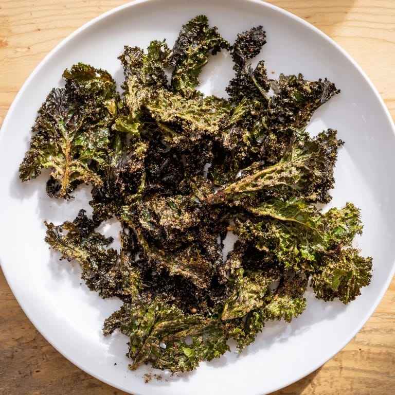 SaveClose-up of crispy, flavorful Crispy Kale Chips, seasoned and ready for that perfect healthy bite. | pulsebaker.com