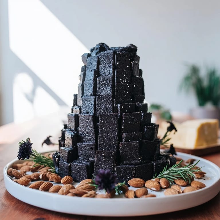 Save I discovered the Obsidian Peak while browsing a gallery opening's cocktail spread—not the paintings, but the fearless cheese board that stopped everyone mid-conversation. A tower of black wax cheddar stood like a monument, surrounded by dark crackers and these gleaming charcoal almonds that caught the light like polished stones. I remember thinking it was almost too beautiful to eat, until someone handed me a knife and suddenly the whole thing made sense: bold, dramatic, and utterly delicious in the most unexpected way.