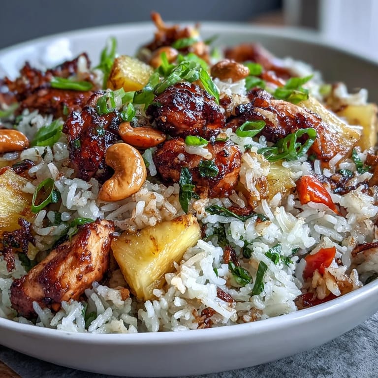 Save Imagine the sizzle of a hot wok, the aroma of garlic and ginger wafting through your kitchen, and the vibrant colors of bell peppers, pineapple, and cashews coming together in perfect harmony. This Pineapple Chicken Fried Rice with Cashews is not just a meal—it's a culinary adventure that brings the bold, exciting flavors of Asian fusion cuisine straight to your dinner table. Whether you're looking for a quick weeknight solution or a dish that will impress guests with minimal effort, this sweet-savory creation delivers on every front. The combination of tender chicken, juicy pineapple chunks, crunchy cashews, and perfectly seasoned jasmine rice creates a symphony of textures and tastes that will have everyone asking for seconds.