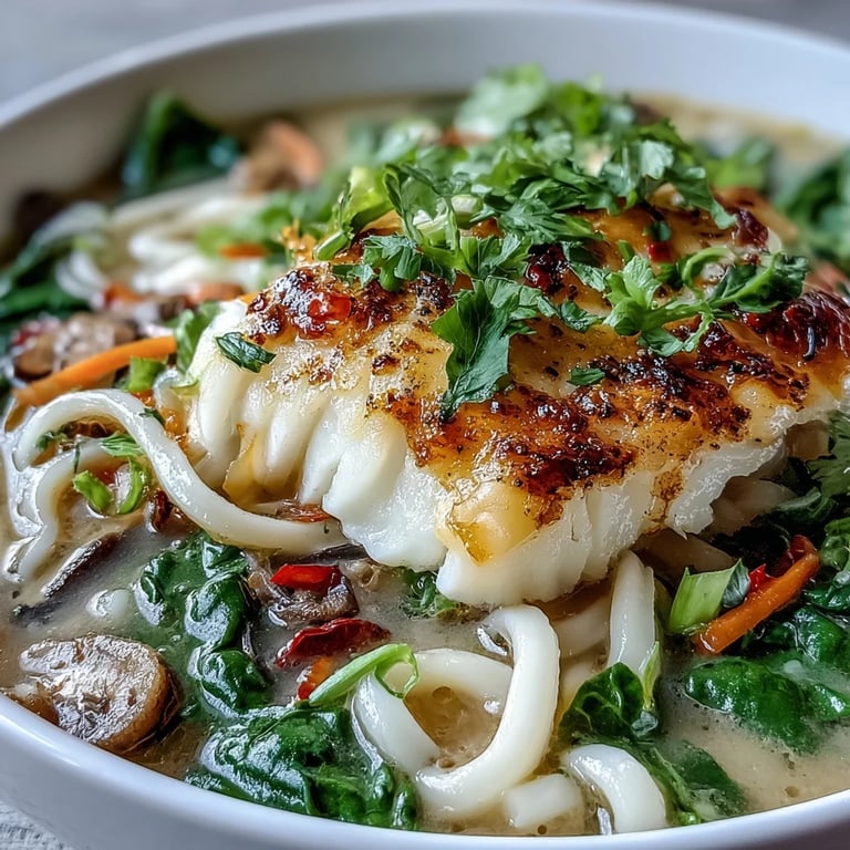 Save The kitchen was quiet except for the sound of rain tapping against the window when I first put this bowl together on a cold Tuesday night. I had cod thawing in the fridge and a tin of coconut milk in the pantry, and I wanted something warm without the heaviness of cream or butter. The broth came together faster than I expected, filling the house with ginger and lime, and by the time I slid the fish in, I knew this would become a regular in my rotation. It's the kind of meal that feels like care without demanding much from you.