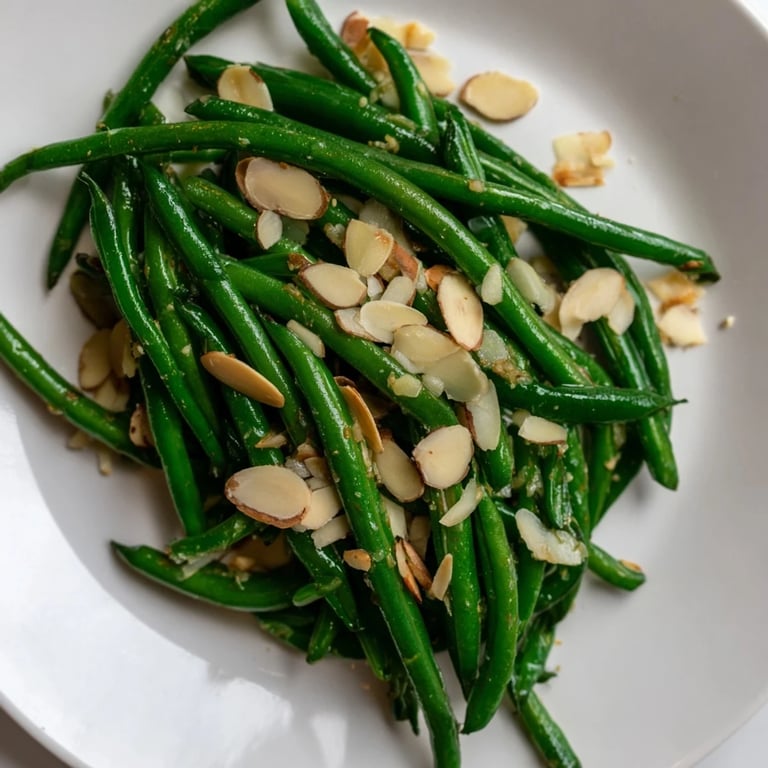 - Sprinkle the toasted almonds over the green beans and serve immediately.