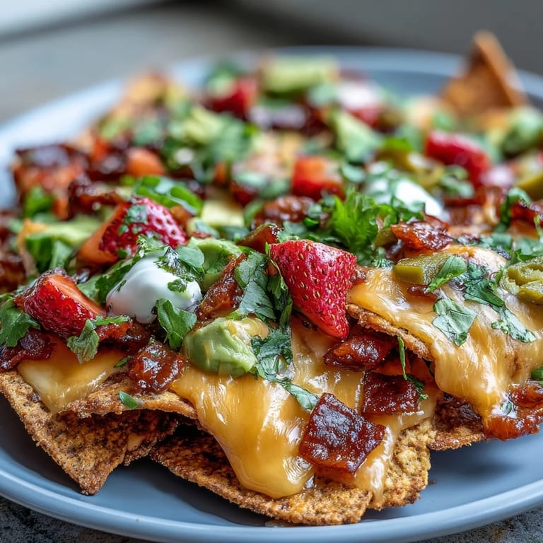 This recipe is honestly a jumping-off point rather than a strict rulebook. Some people add crispy chorizo or shredded chicken if they want it heartier, others swap the strawberry salsa for mango salsa if they're feeling tropical, and I've done a fully vegan version for friends using plant-based cheese that actually melts beautifully now. The core concept—warm, cheesy, loaded nachos with a fresh, bright topping—stays the same, but you get to make it reflect your mood and your guests.